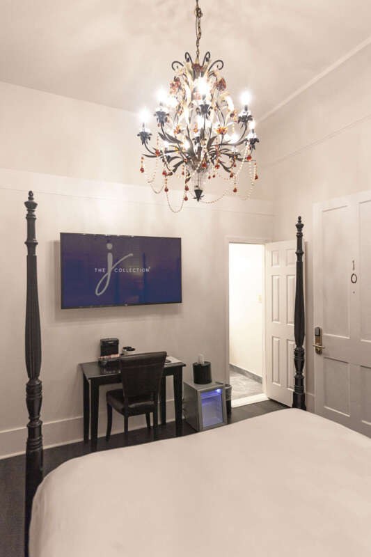 Charming and delightfully decorated Queen bedroom offers complimentary wireless internet, 45″ flat-screen Smart TV, and mini fridge. Conveniently located on The Historic St. Charles Streetcar line, each room is outfitted with a bathroom En Suite and provided toiletries all within your 225 sq ft sanctuary.